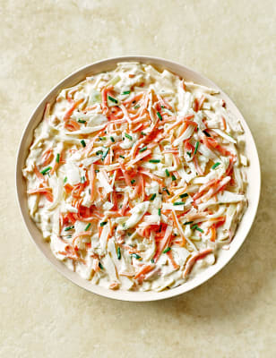 Toss shredded cabbage with carrots and 1 tablespoon of kosher salt in a mesh colander set in a large bowl. Toss until cabbage is thoroughly coated. Let stand for 1 hour. The original version was always a staple offering at family gatherings. Discard the water that collects in the bowl and dry the bowl.